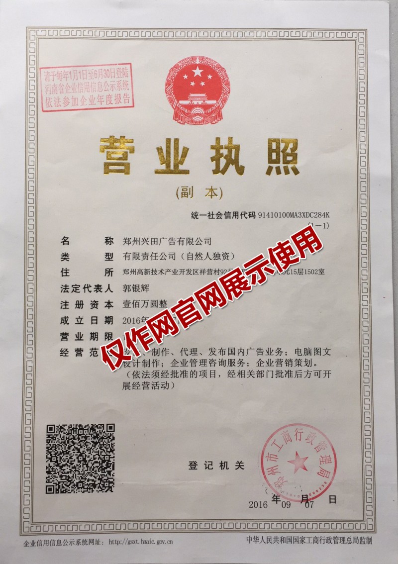 热烈祝贺郑州兴田广告有限公司网站开通!欢迎各界新老客户联系洽谈业务!欢迎拨打电话垂询!139 0382 2369 137 3383 6811 郭经理